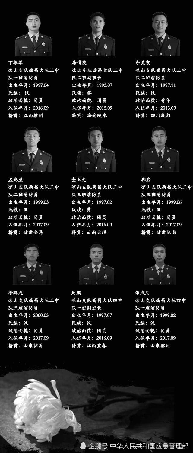 四川省涼山州木里縣“3·30”森林火災(zāi)犧牲撲火英雄名單